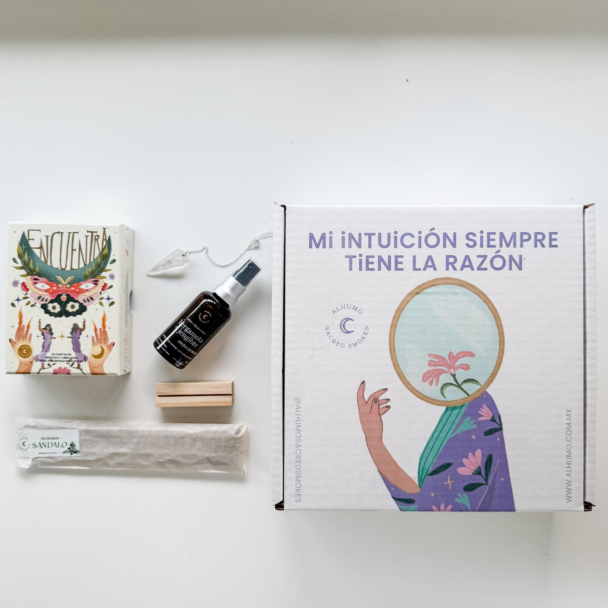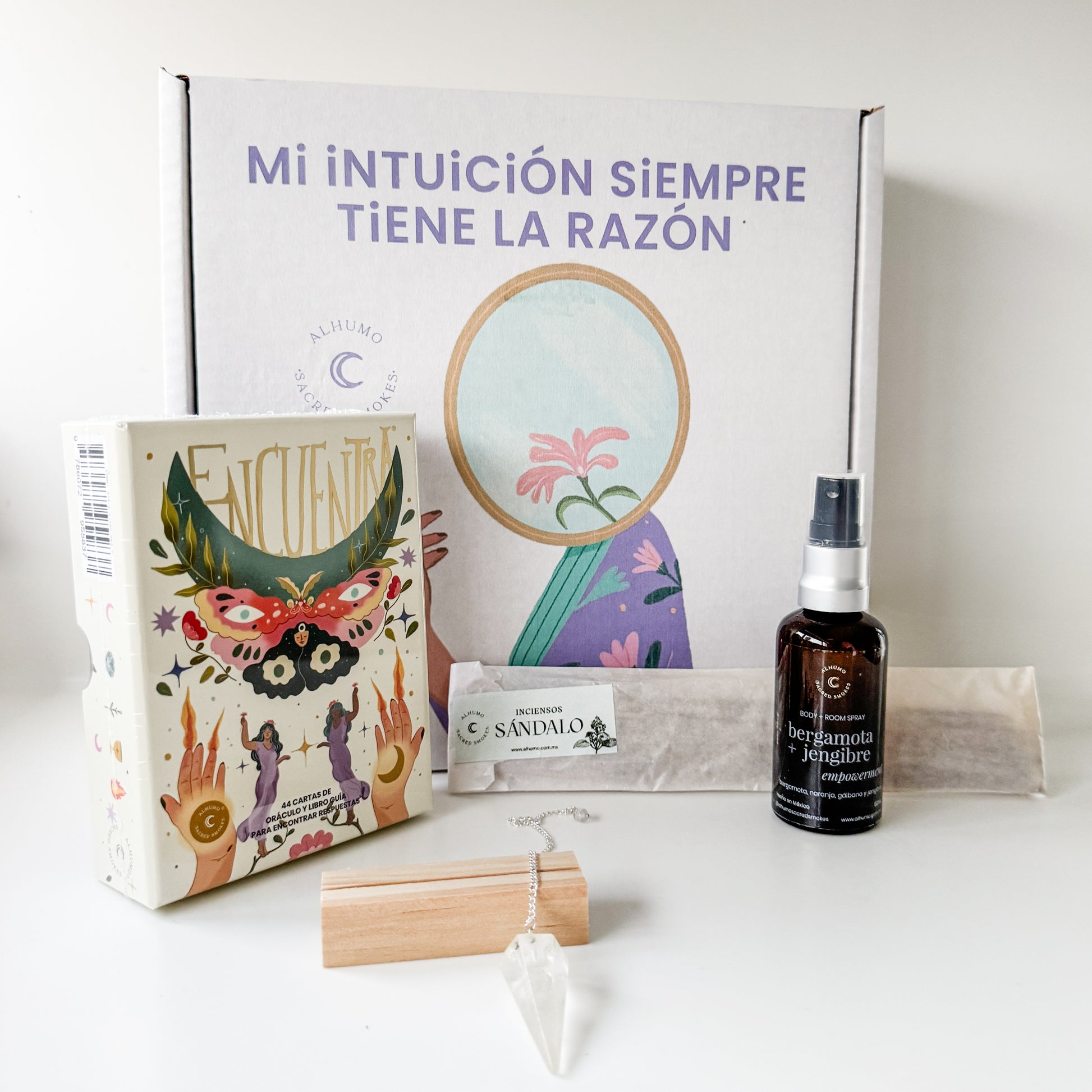 DescripciónUn regalo perfecto para para descubrir tu guía interior. Este kit especial combina el poder del Oráculo Encuentra con herramientas energéticas únicas como un péndulo, y el Smudge Spray "Intuicion", creando una experiencia completa de conexión intuitiva. El Oráculo Encuentra es un oráculo de 44 cartas con un libro que profundiza en cada tarjeta y además proporciona un ritual para trabajar la intención que cada tarjeta presenta. Es un proyecto 100% mexicano que tomó un año de preparación y hoy nos llena el corazón poder presentar. En este kit especial, añadimos elementos cuidadosamente seleccionados para elevar tu práctica intuitiva:
