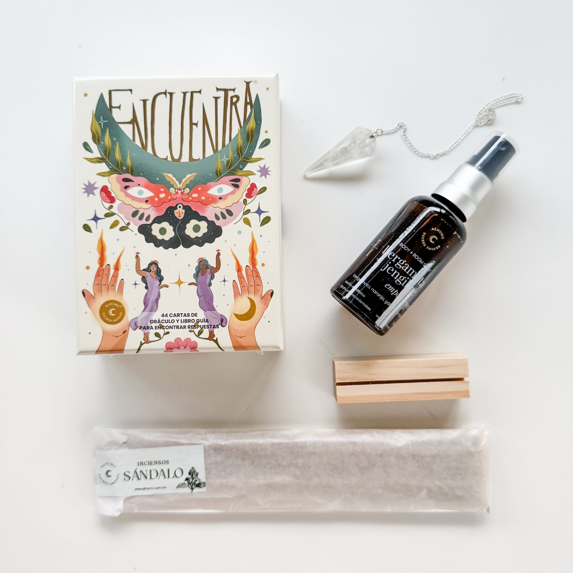 Kit para Regalo: Oráculo de las respuestas - péndulo, brisa aromática, sándalo y base