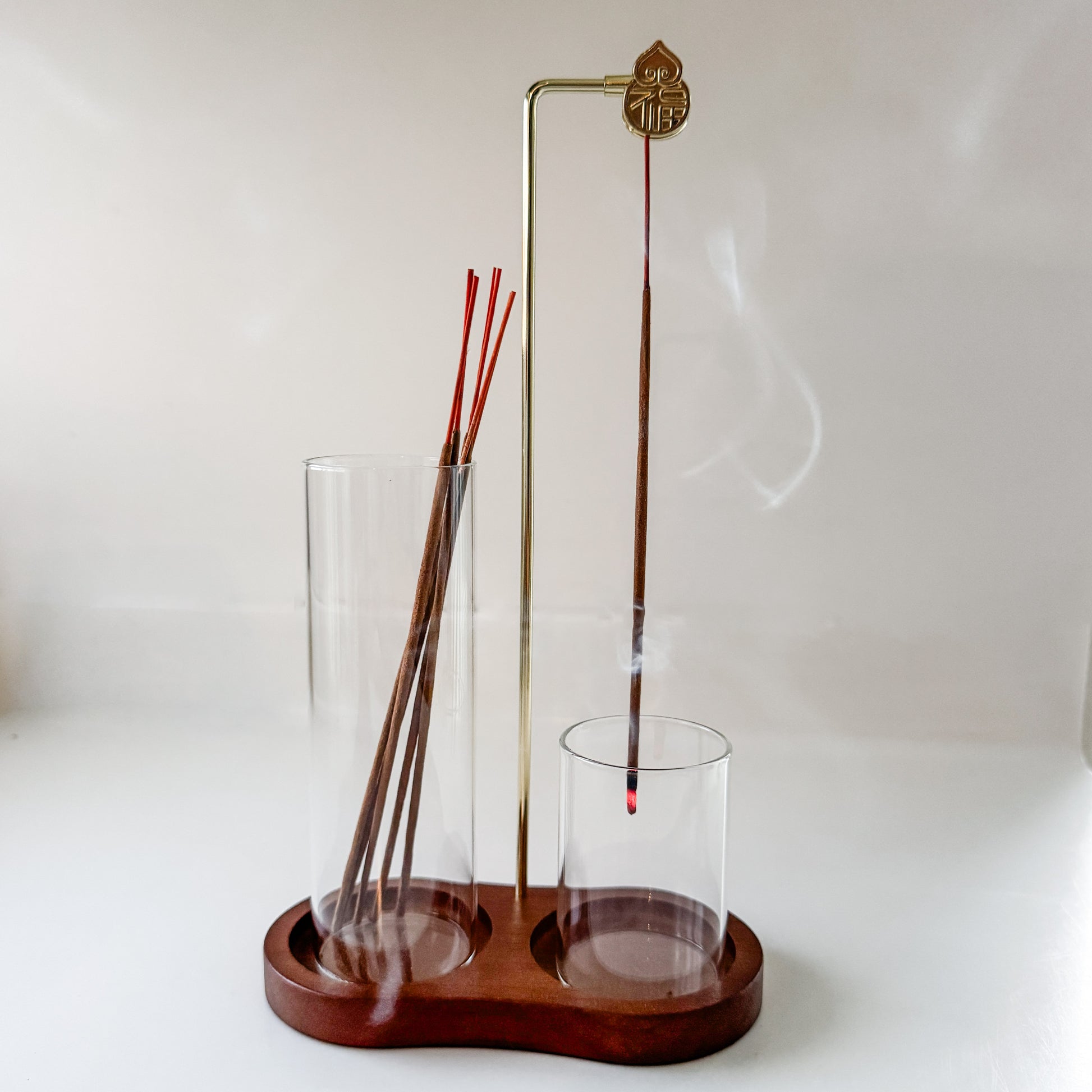 Cómo usarGuía de Uso: Tu Ritual de Conexión Para transformar un día común en un momento de paz, sigue estos pasos: 1. Prepara el ambiente Comienza atomizando el Mist de Bergamota y Jengibre en el aire, sobre tu almohada o hacia el techo. Respira profundamente para que las notas cítricas y especiadas despejen tu mente y te ayuden a soltar el estrés del día. 2. Enciende la luz interior (La Vela) Enciende la Vela de Caoba y Sándalo. Deja que el aroma amaderado llene la habitación. Su luz suave será la señal para tu cuerpo de que es momento de descansar. Tip: Úsala mientras lees o tomas un baño. 3. Purifica con el humo (El Incienso) • Coloca el cilindro de cristal en el orificio de la base de madera. • Enciende una varita de Palo Santo, apaga la llama con un suave movimiento y cuélgala del gancho dorado (hacia abajo) dentro del tubo. • Observa cómo el humo danza dentro del cristal sin ensuciar nada. El Palo Santo limpiará la energía de tu hogar. 4. Momento de Intención Toma tu Lista de Agradecimiento. Mientras disfrutas de los aromas, escribe tres cosas que agradeces de tu día. Enfócate en lo positivo, por pequeño que sea. Guardar estos pensamientos en el saquito de tela te ayudará a dormir con el corazón tranquilo. 5. Ritual para Descansar Sigue las instrucciones de tu guía impresa para realizar estiramientos leves o respiraciones conscientes antes de dormir. Apaga la vela, deja que el último hilo de incienso se desvanezca y disfruta de un sueño profundo. |